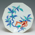 実の多いところから多子、すなわち子福音を寓意するものとして中国では「千子一房」と喜ばれ、子孫繁栄の吉祥文様とされています。古くから神聖視され、江戸期の色鍋島にも多く描かれています。