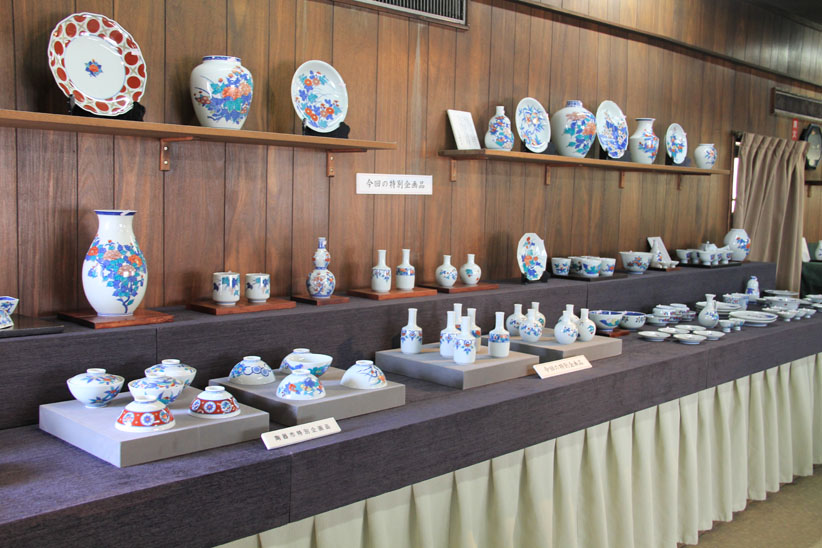 今右衛門の陶器市特設会場の飾りつけを終了したところです。是非ご来店くださいませ。(本宅前2階)